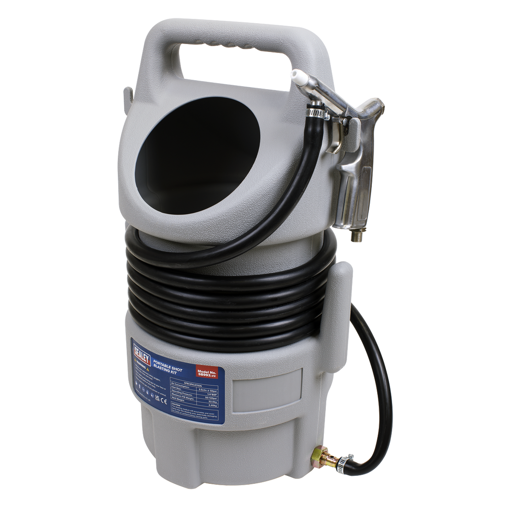 - Supplied with 4.5m grit and fitted with a heavy-duty shot blasting gun.