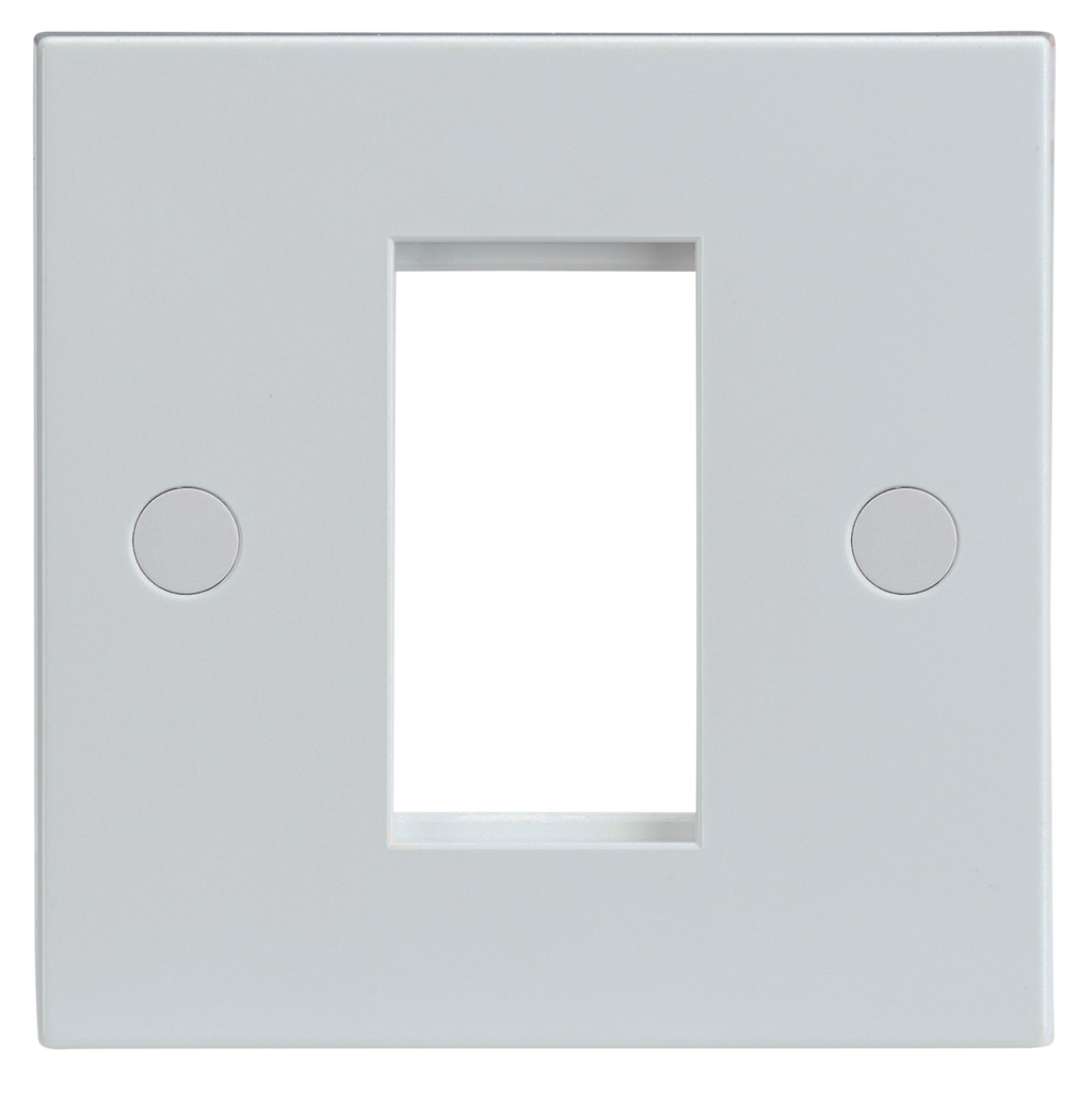 Suitable for use with euro module inserts. Ideal for creating bespoke TV/DATA/HDMI/USB/TEL installations. - Accepts a single 25 x 50mm euro module - Minimum mounting box depth: dependent on euro module used