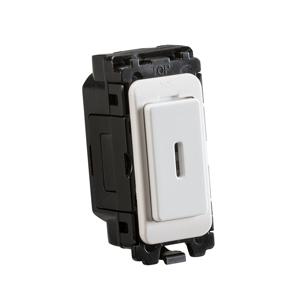 Designed and finished to coordinate with the Curved Edge Switches and Sockets range. - 20AX rated - 2-way secret key switch (includes key) - Single Pole - Front mounting grid module - Supplied in Knightsbridge rip top polybag with euro slot FOR USE WITH CURVED GRID SYSTEM ONLY