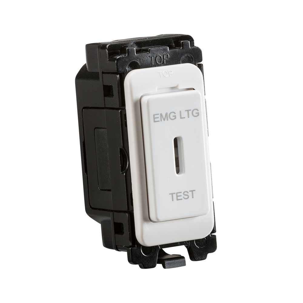 Designed and finished to coordinate with the Curved Edge Switches and Sockets range. - 20AX rated - Key switch (includes key) marked "EMG LTG TEST" - Double Pole - Front mounting grid module - Supplied in Knightsbridge rip top polybag with euro slot FOR USE WITH CURVED GRID SYSTEM ONLY