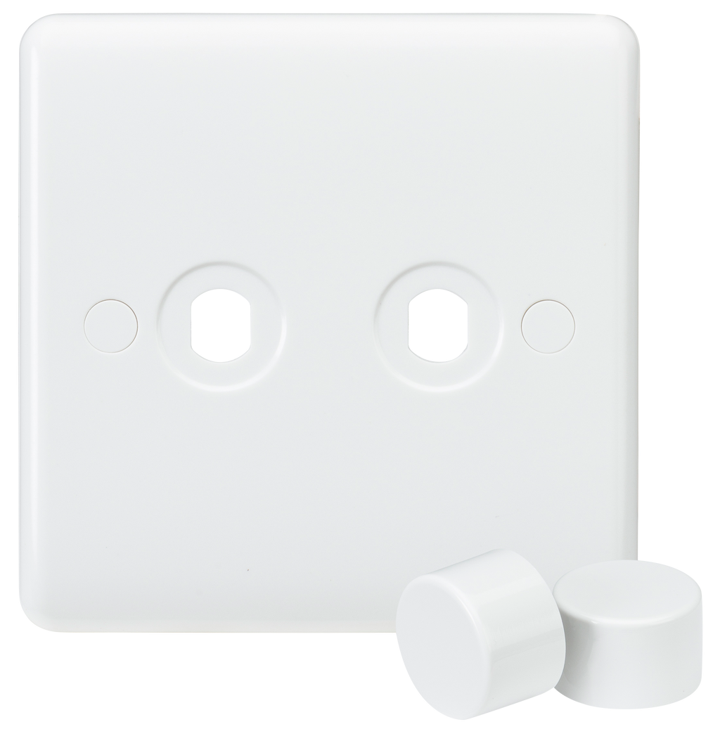Gently contoured 7mm plate with rounded edges and anti-microbial properties - 2 position plate with matching dimmer caps - Suitable for mounting Knightsbridge dimmer modules or other after-market dimmer modules for a bespoke solution. - Includes screw cap covers - Packed in Individual Knightsbridge rip top polybag with euro slot