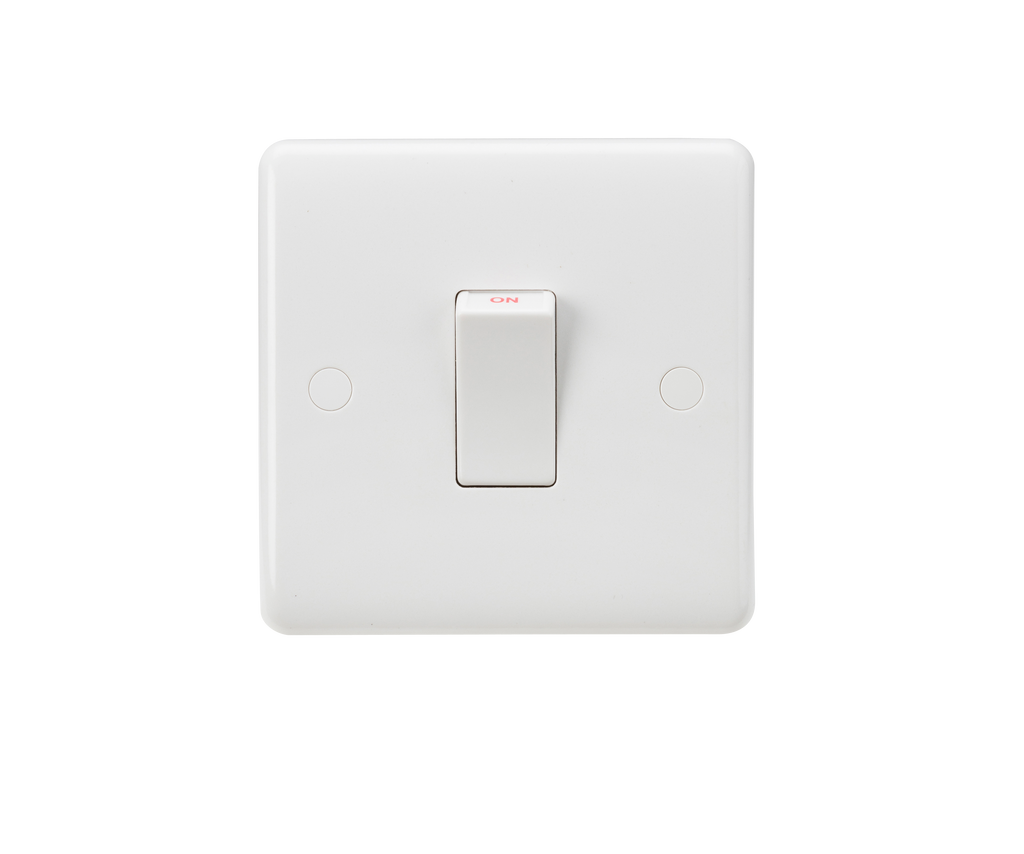Gently contoured 7mm plate with rounded edges and anti-microbial properties - 45A rated - Double Pole - Includes screw cap covers - Certified to EN 60669-1 - Supplied in Knightsbridge rip top polybag with euro slot