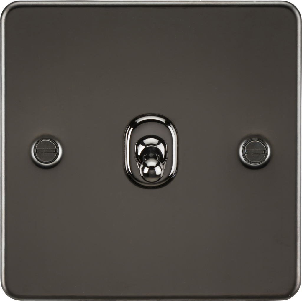 Perfect finishing touch to any modern home, ultra-low profile Flat Plate metal design with matching metal toggle. 10AX 2-way switches are generally used when there are two entrances to a room, where there is a switch positioned at either entrance requiring joint control of the lighting. - 10AX rated - Ultra-low profile Flat Plate design with built in gasket - Certified to EN 60669-1 - Minimum mounting box 16mm