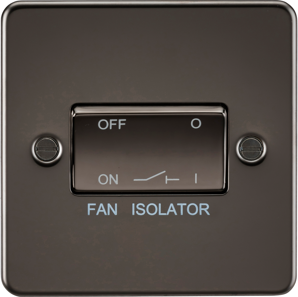 Ideal for providing a safe and simple method of isolating fan units in en-suite bathrooms, family bathrooms, utility rooms, store rooms etc. Often the fan unit will be wired into the lighting circuit for convenience and efficiency. With this kind of installation there is often a need to leave the lighting circuit live whilst isolating the fan for maintenance. Flat Plate low profile metal design with matching metal rocker. - 10AX rated - Triple Pole - Ultra low profile design with built in gasket - Certified to EN 60669-1, EN 60669-2-4 - Minimum mounting box 16mm