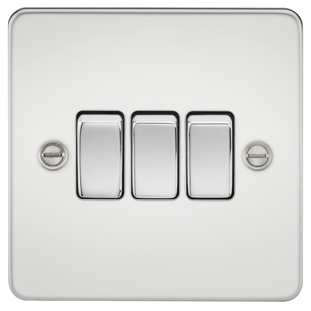 Flat Plate 10AX 3G 2-way switch - polished chrome