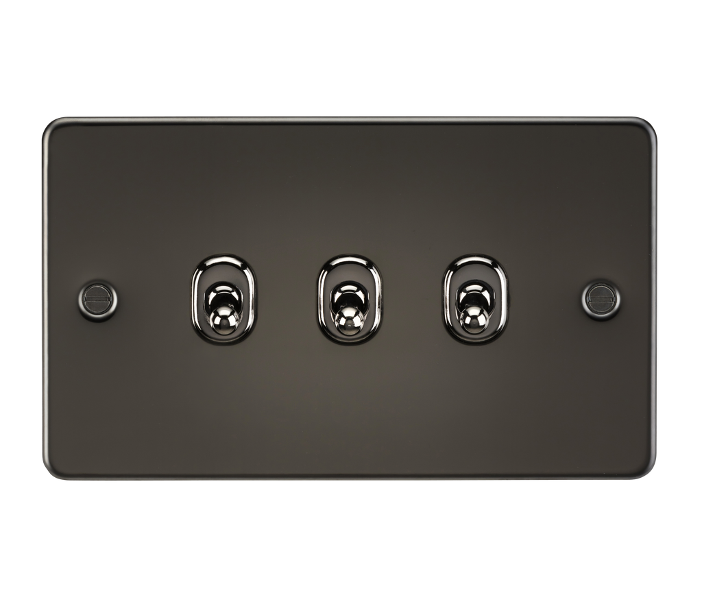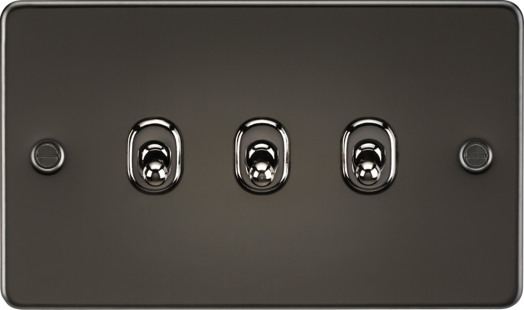 Perfect finishing touch to any modern home, ultra-low profile Flat Plate metal design with matching metal toggle. 10AX 2-way switches are generally used when there are two entrances to a room, where there is a switch positioned at either entrance requiring joint control of the lighting. - 10AX rated - Ultra-low profile Flat Plate design with built in gasket - Certified to EN 60669-1 - Minimum mounting box 16mm