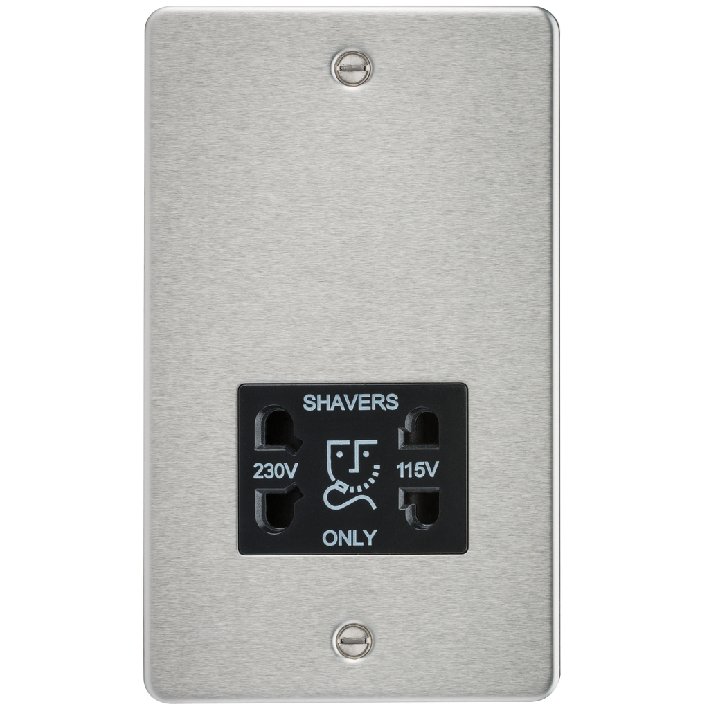Flat Plate 115/230V dual voltage shaver socket - brushed chrome with black insert