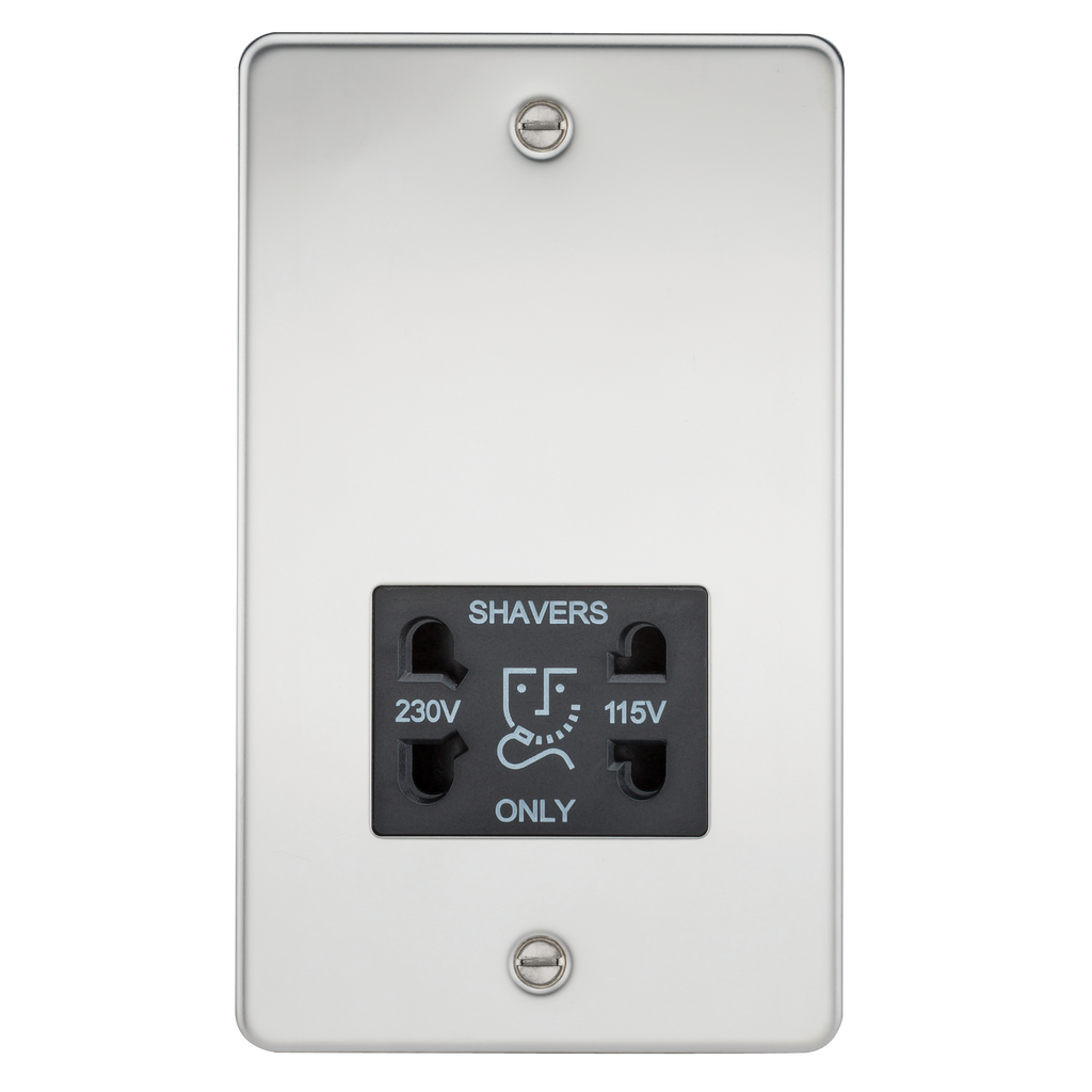 Flat Plate 115/230V dual voltage shaver socket - polished chrome with black insert