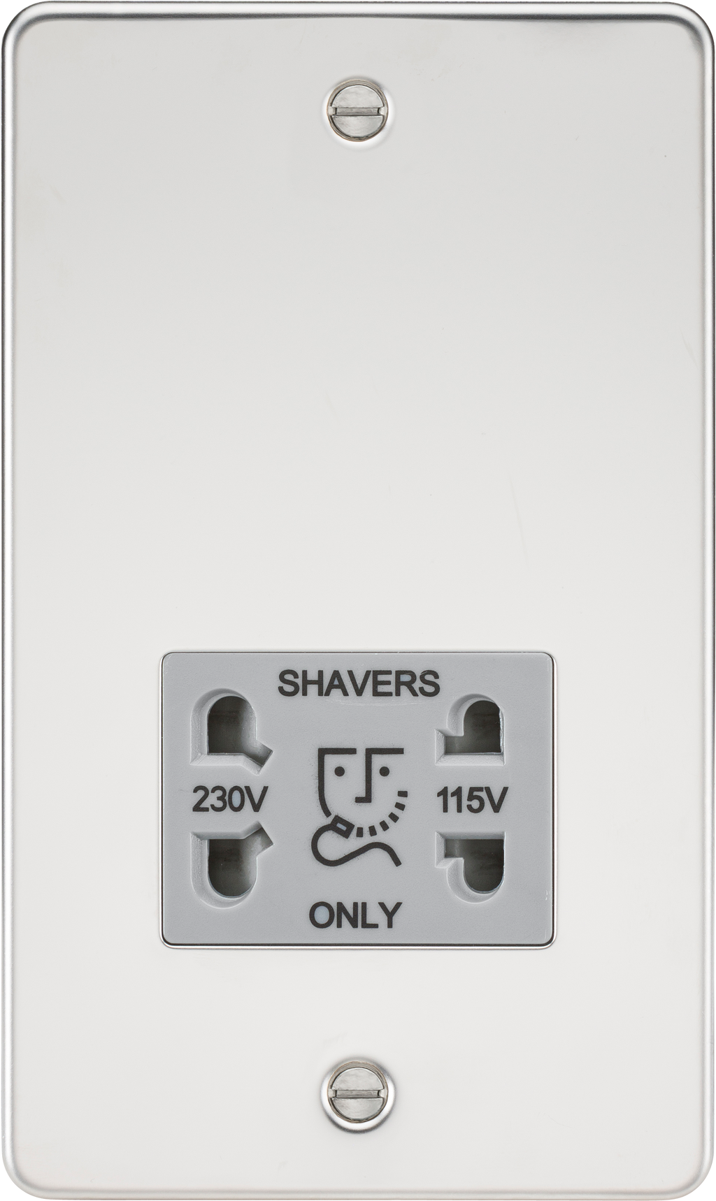 Flat Plate 115/230V dual voltage shaver socket - polished chrome with grey insert