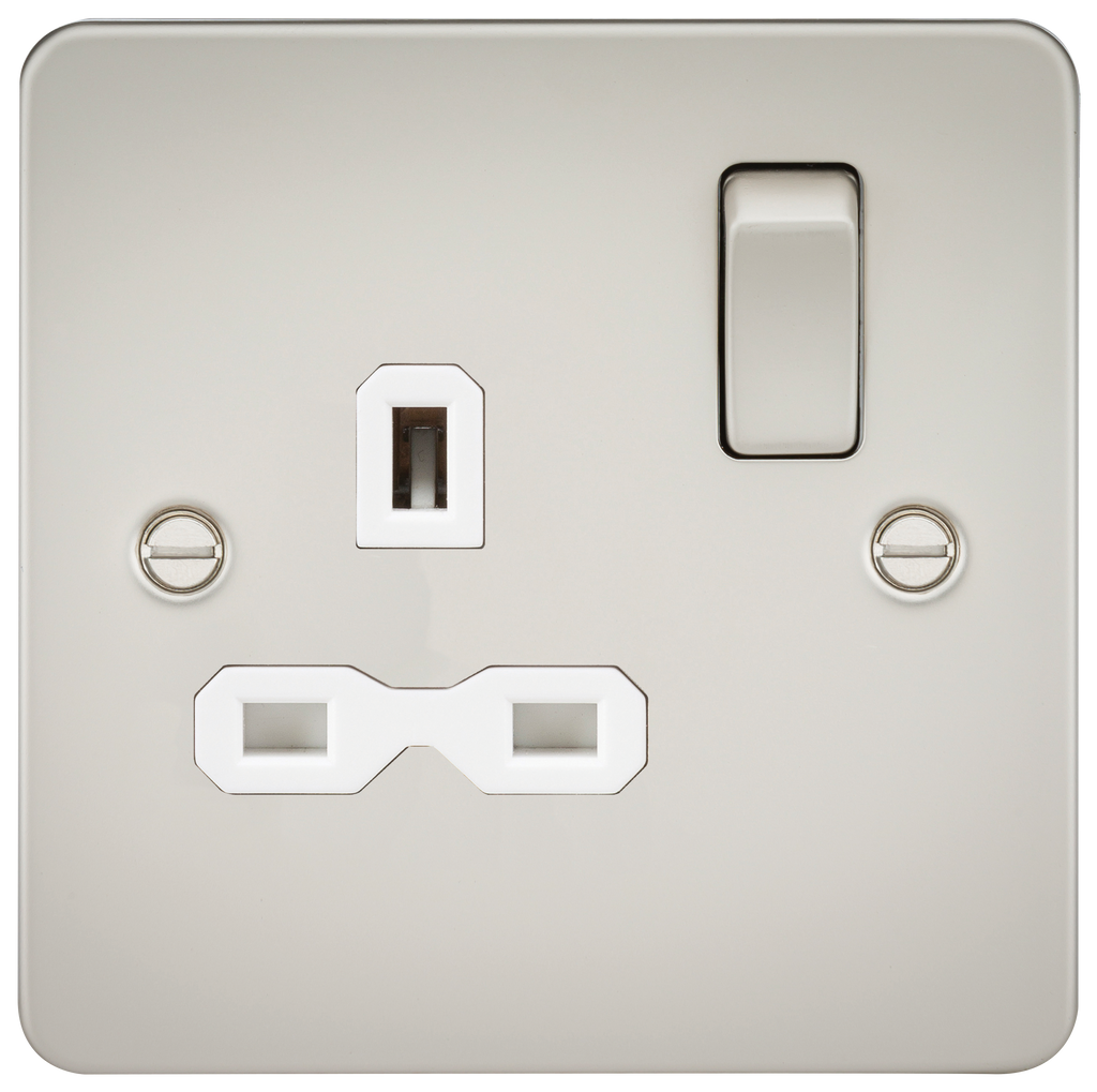 Perfect finishing touch to any modern home, ultra-low profile Flat Plate metal design with matching metal rocker, unique socket insert design that is completely hidden once a plug is inserted. - 13A 1G Switched Socket - Double Pole Switch - Flat Plate low profile design with built in gasket - Certified to BS 1363:2 - Minimum mounting box depth 25mm