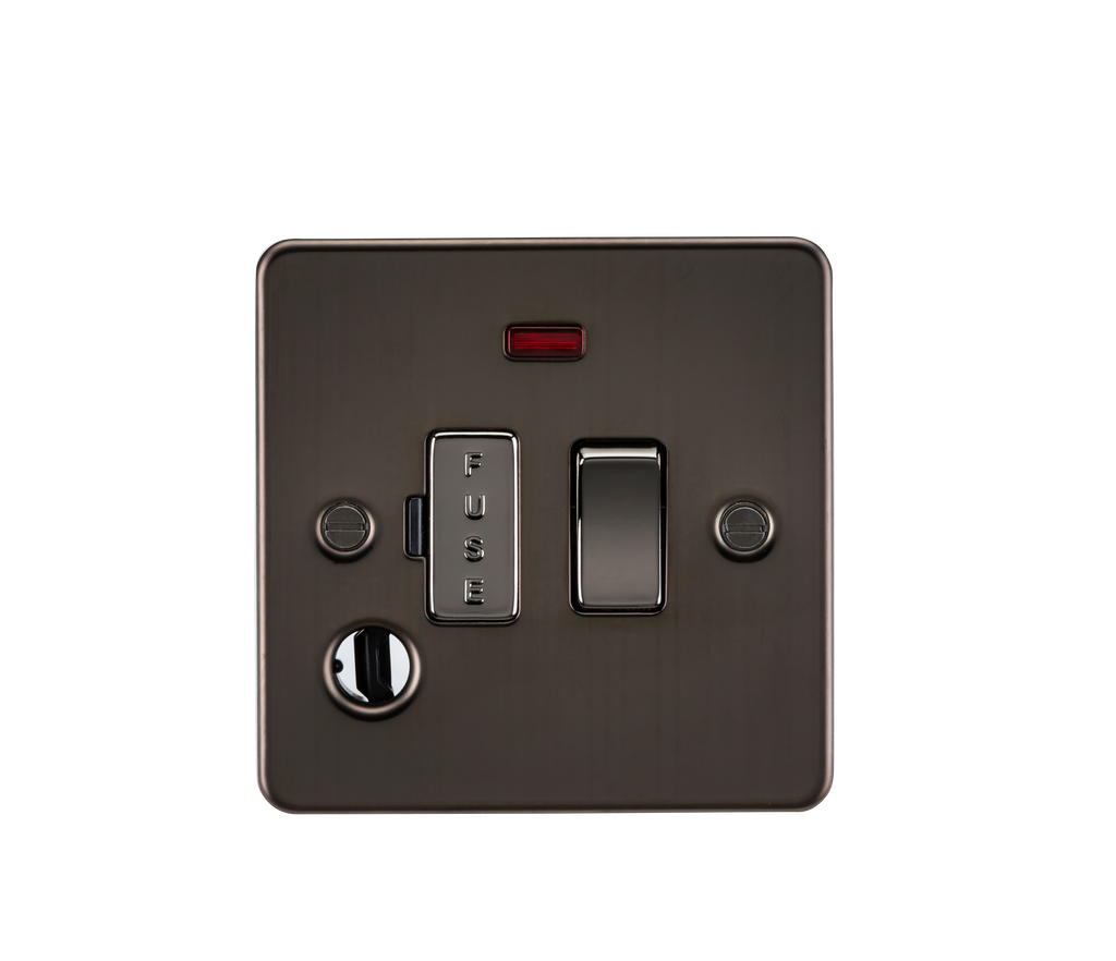 Flat Plate 13A switched fused spur unit with neon and flex outlet - gunmetal