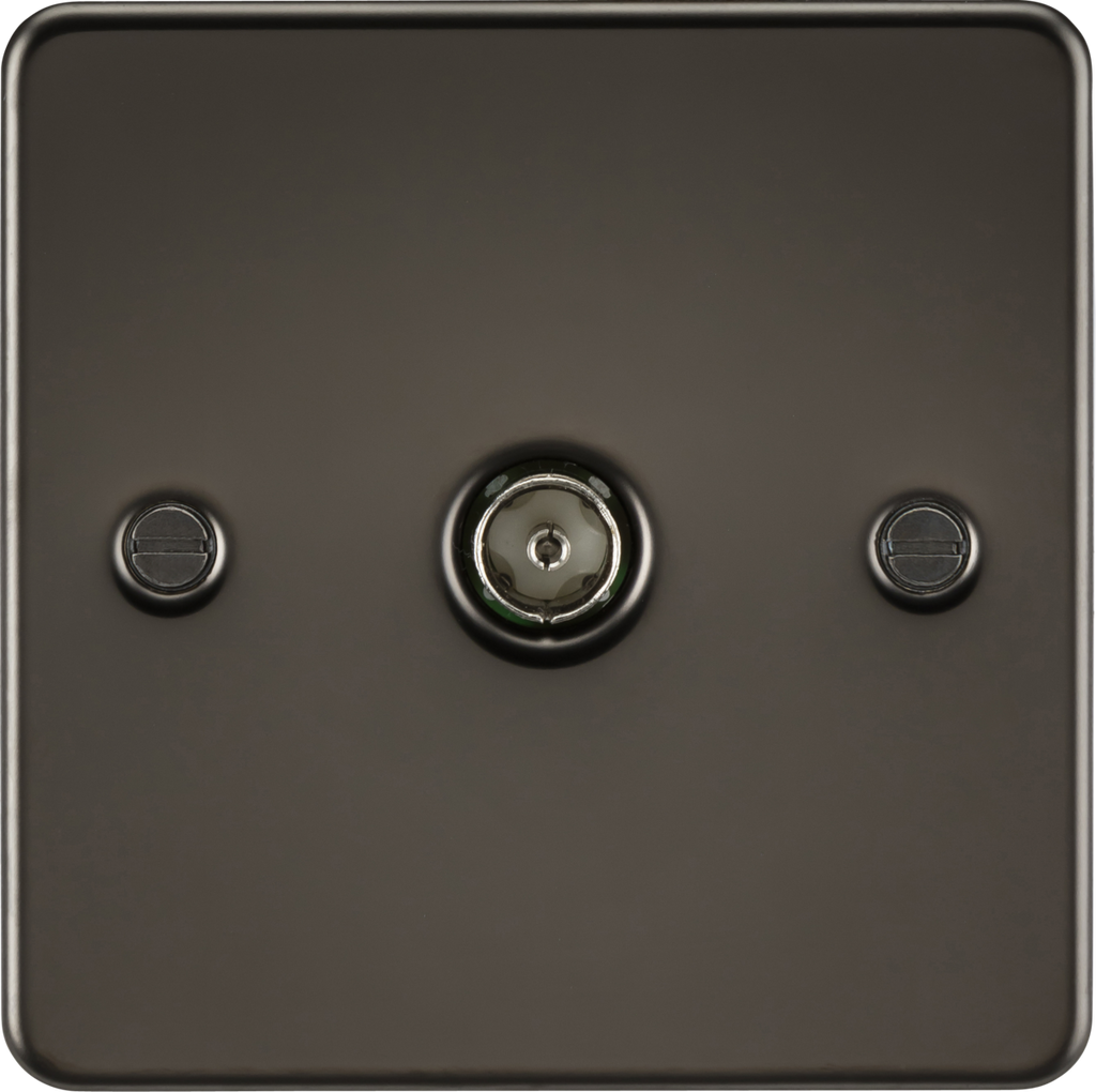 Ideal for standard TV/Coax connections (non-isolated). Flat Plate low profile design - Coaxial TV outlet - Non-isolated - Ultra low profile design with built in gasket - Certified to BS 5733 - Minimum mounting box depth: 25mm