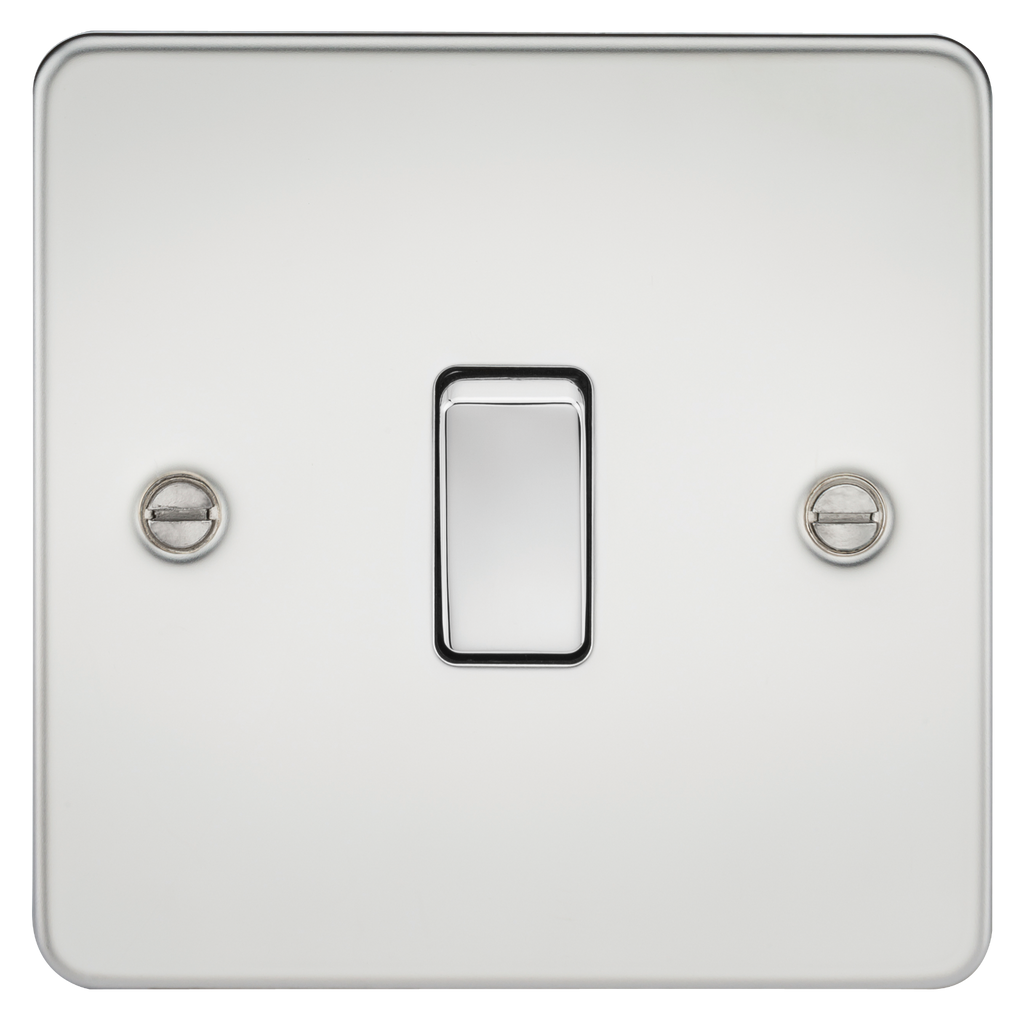 Ideal for fixed appliances such as water heaters, Flat Plate low profile metal design with matching rocker - 20A rated - Double pole - Ultra low profile design with built in gasket - Certified to EN 60669-1 - Minimum mounting box depth 25mm
