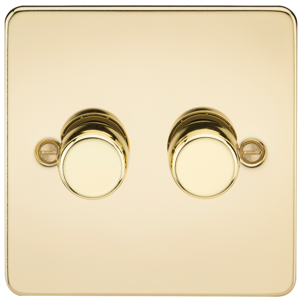 Perfect finishing touch to any modern home, Flat Plate low profile metal design with matching dimmer cap. - 10-200W Incandescent - 5-150W LED - 2-way - Push on/off - Trailing edge dimmer technology - Certified to EN 60669-2 - Minimum mounting box depth: 25mm NB: PLEASE CHECK WITH LAMP MANUFACTURER FOR COMPATIBILITY
