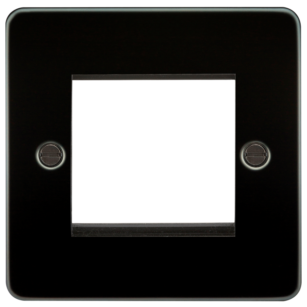 Suitable for use with euro module inserts. Ideal for creating bespoke TV/DATA/HDMI/USB/TEL installations. Flat Plate low profile design - Accepts two 25 x 50mm , or a single 50 x 50mm euro module - Ultra low profile design with built in gasket - Minimum mounting box depth: dependent on euro module used