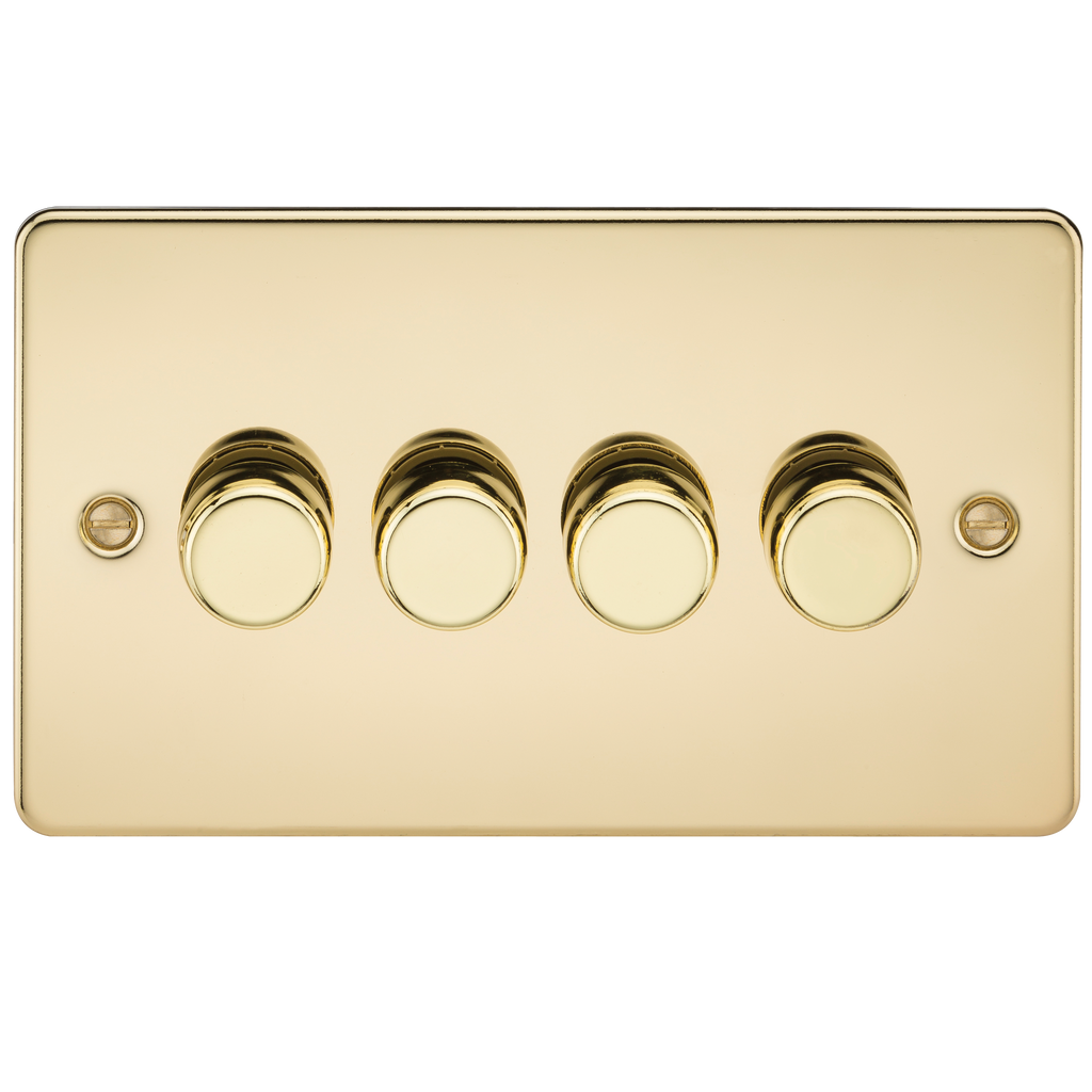 Perfect finishing touch to any modern home, Flat Plate low profile metal design with matching dimmer cap. - 10-200W Incandescent - 5-150W LED - 2-way - Push on/off - Trailing edge dimmer technology - Certified to EN 60669-2 - Minimum mounting box depth: 25mm NB: PLEASE CHECK WITH LAMP MANUFACTURER FOR COMPATIBILITY