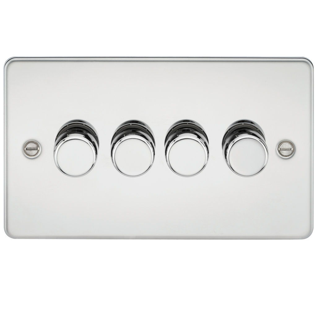 Perfect finishing touch to any modern home, Flat Plate low profile metal design with matching dimmer cap. - 10-200W Incandescent - 5-150W LED - 2-way - Push on/off - Trailing edge dimmer technology - Certified to EN 60669-2 - Minimum mounting box depth: 25mm NB: PLEASE CHECK WITH LAMP MANUFACTURER FOR COMPATIBILITY