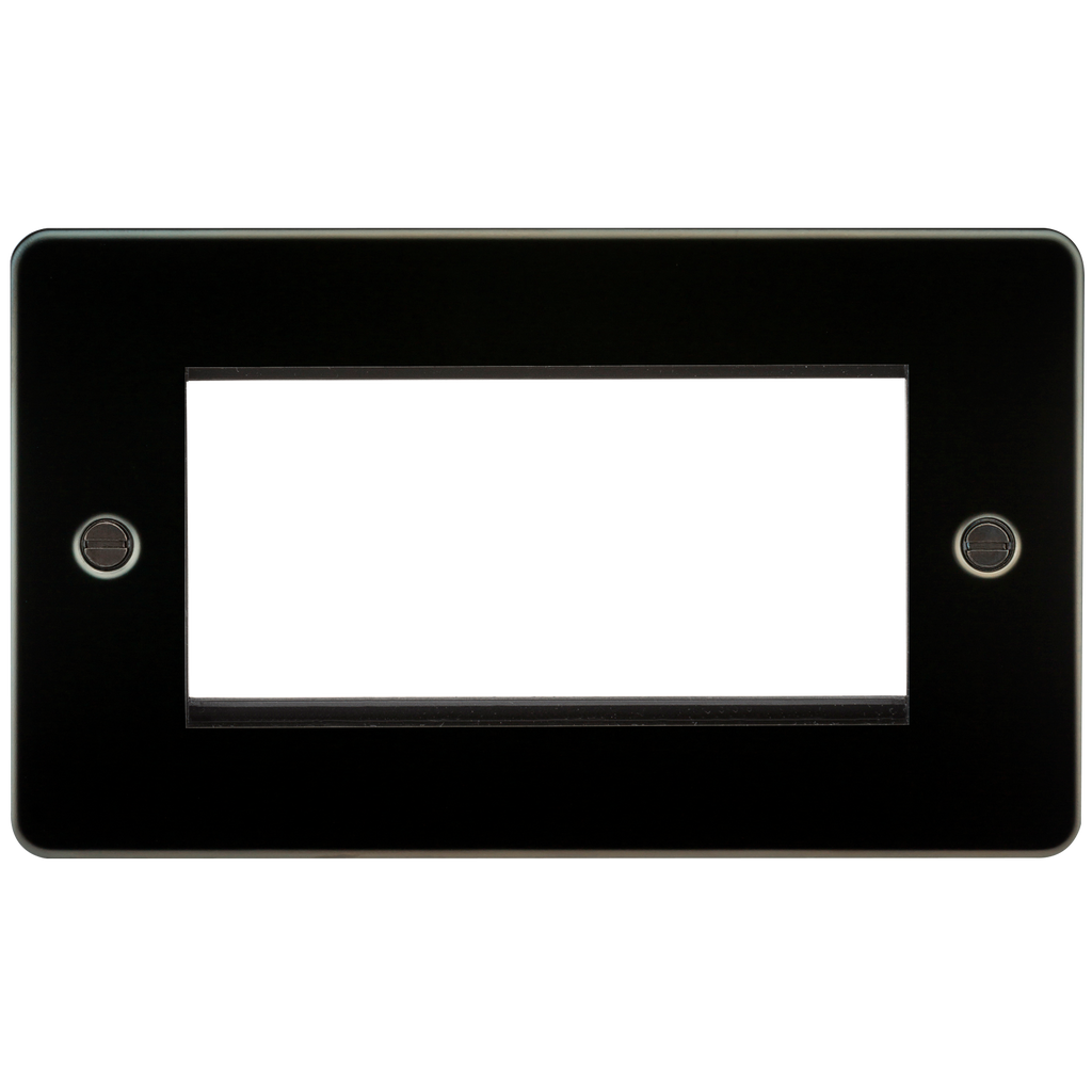Suitable for use with euro module inserts. Ideal for creating bespoke TV/DATA/HDMI/USB/TEL installations. Flat Plate low profile design - Accepts four 25 x 50mm , or two 50 x 50mm euro module or a combination of both - Ultra low profile design with built in gasket - Minimum mounting box depth: dependent on euro module used