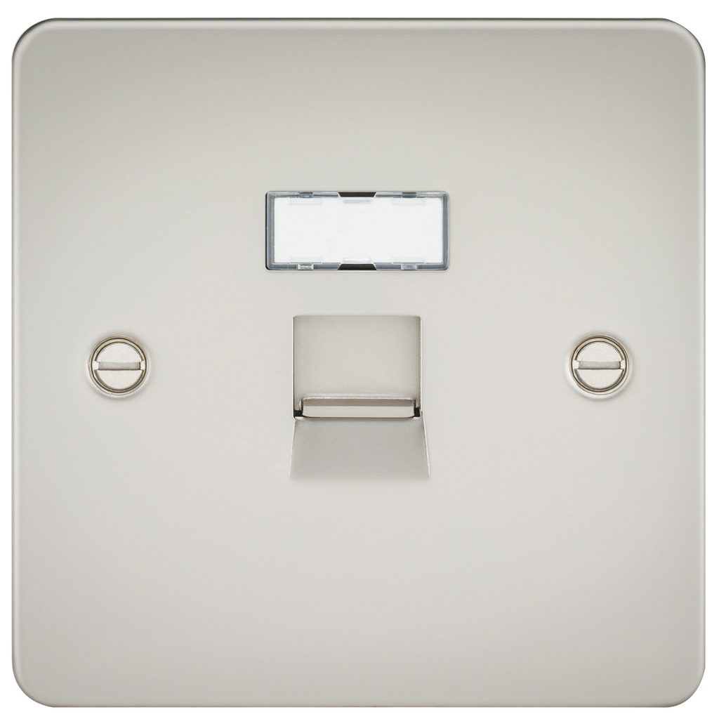 Ideal for creating wired networking points around the home. Flat Plate low profile design - Single shuttered UTP CAT5e RJ45 port - IDC terminals (tool included) - Write on designation label - Ultra low profile design with built in gasket - Certified to BS 5733 - Minimum mounting box depth: 35mm