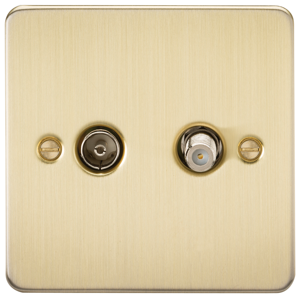 Flat Plate TV and SAT TV Outlet (isolated) - Brushed Brass