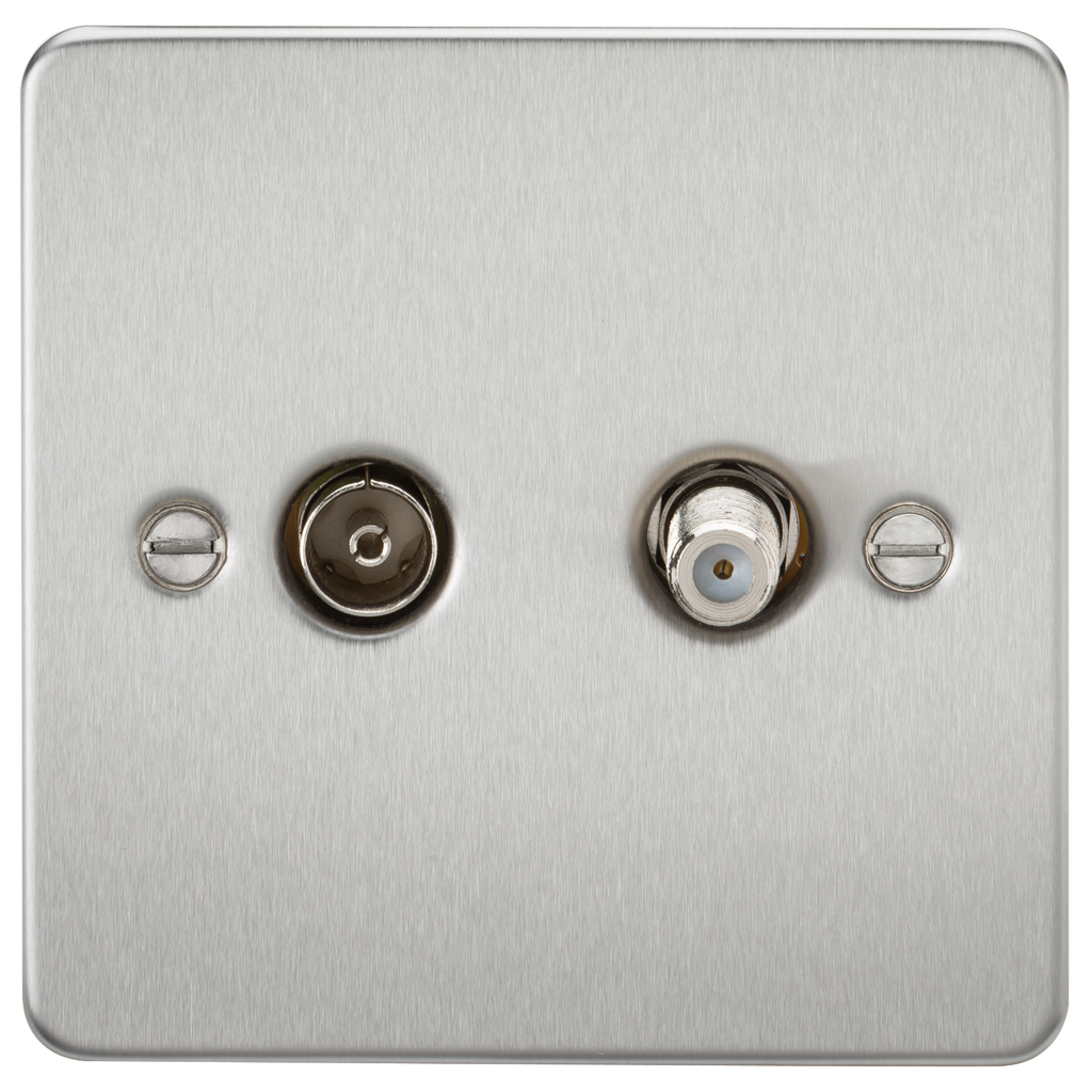 Ideal for TV/Coax and SAT TV/F-type connections (Isolated). Isolated outlets are for use with communal dishes and aerial installations. The isolated socket blocks interference from neighboring installs i.e. an apartment block. Flat Plate low profile design - 1 x Coaxial TV outlet - 1 x F-Type SAT TV Outlet - Isolated - Ultra low profile design with built in gasket - Certified to BS 5733 - Minimum mounting box depth: 25mm