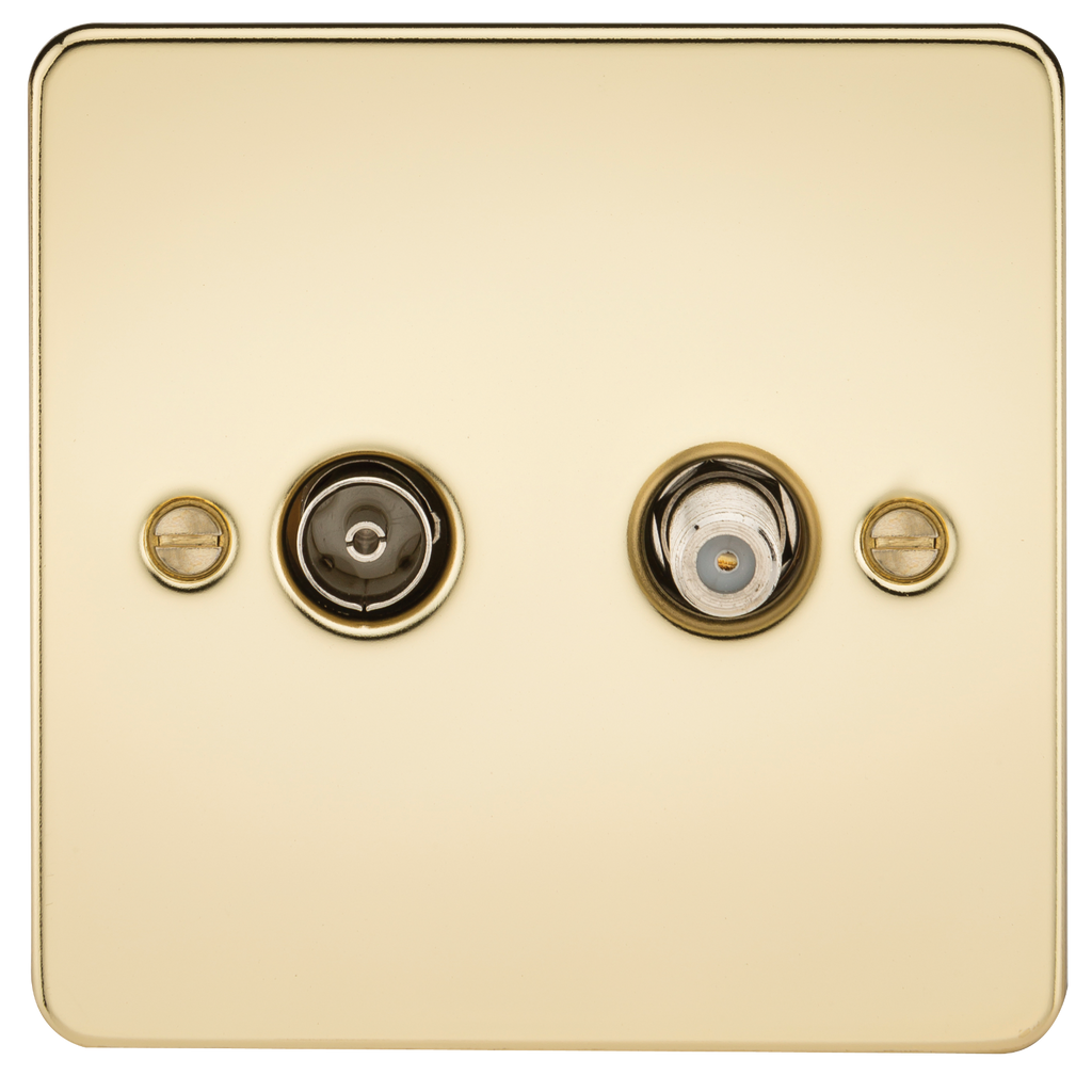 Ideal for TV/Coax and SAT TV/F-type connections (Isolated). Isolated outlets are for use with communal dishes and aerial installations. The isolated socket blocks interference from neighboring installs i.e. an apartment block. Flat Plate low profile design - 1 x Coaxial TV outlet - 1 x F-Type SAT TV Outlet - Isolated - Ultra low profile design with built in gasket - Certified to BS 5733 - Minimum mounting box depth: 25mm
