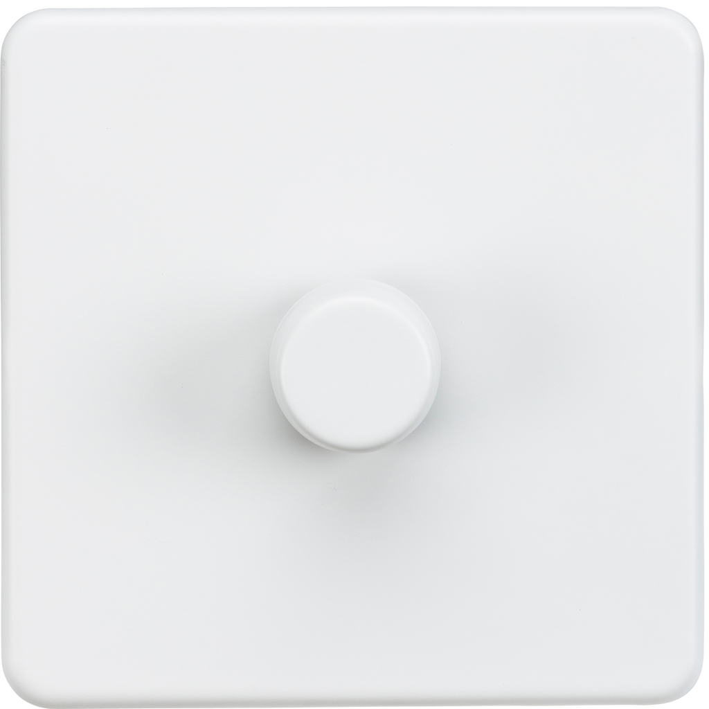 Perfect finishing touch to any modern home, flawless Screwless low profile metal design with matching dimmer cap. - 10-200W Incandescent - 5-150W LED - 2-way - Push on/off - Trailing edge dimmer technology - Certified to EN 60669-2 - Minimum mounting box depth: 25mm NB: PLEASE CHECK WITH LAMP MANUFACTURER FOR COMPATIBILITY