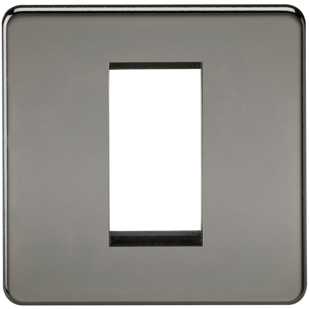 Suitable for use with euro module inserts. Ideal for creating bespoke TV/DATA/HDMI/USB/TEL installations. Flawless Screwless design - Accepts a single 25 x 50mm euro module - Screwless low profile design with built in gasket - Minimum mounting box depth: dependent on euro module used