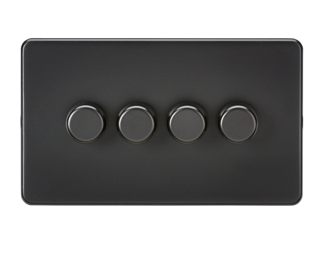 Perfect finishing touch to any modern home, flawless Screwless low profile metal design. - 10-200W Incandescent - 5-150W LED - 2-way - Push on/off - Trailing edge dimmer technology - Certified to EN 60669-2 - Minimum mounting box depth: 25mm NB: PLEASE CHECK WITH LAMP MANUFACTURER FOR COMPATIBILITY