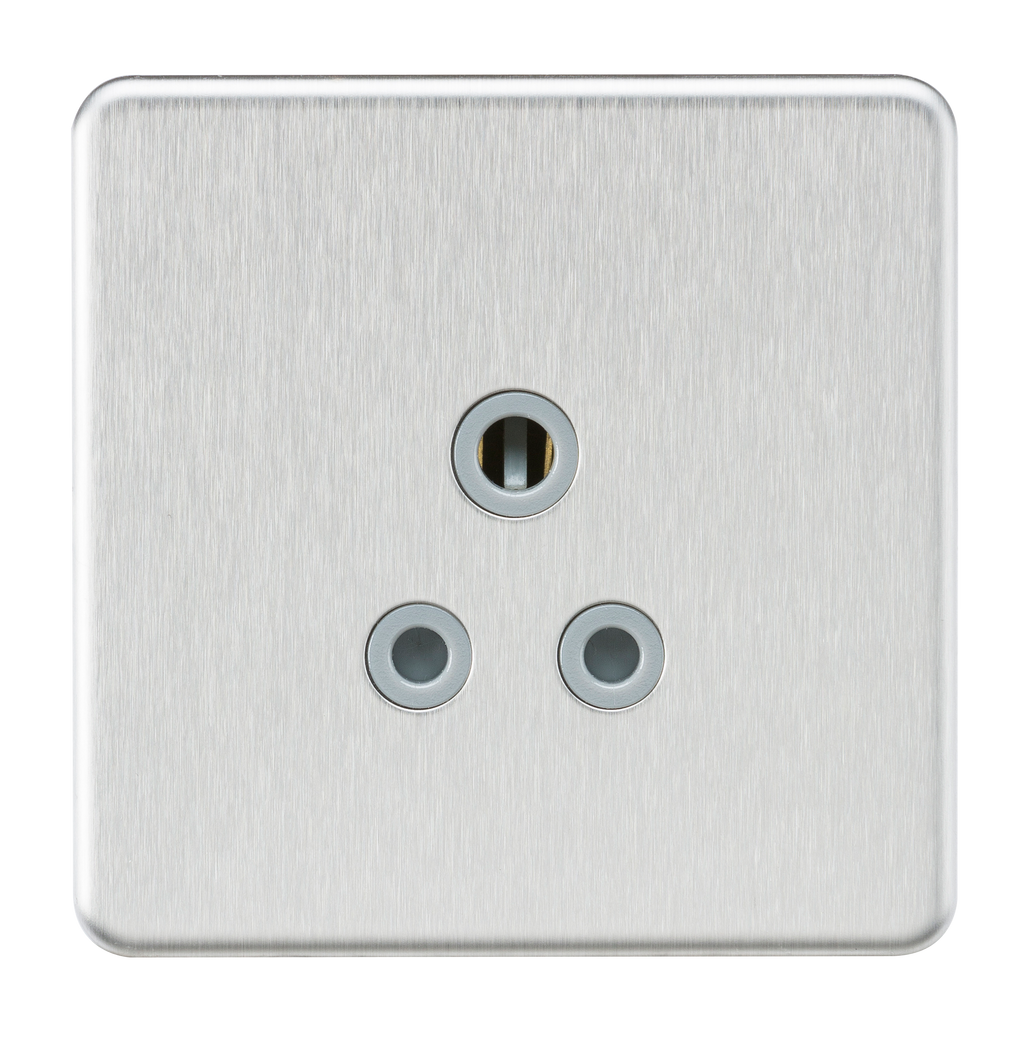Screwless 5A Unswitched Round Socket - Brushed Chrome with Grey Insert