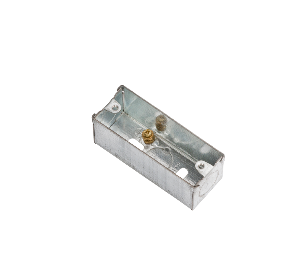 The Zexum 1 Gang 28mm architrave Steel Galvanised Box, made specifically to be used with architrave switches.