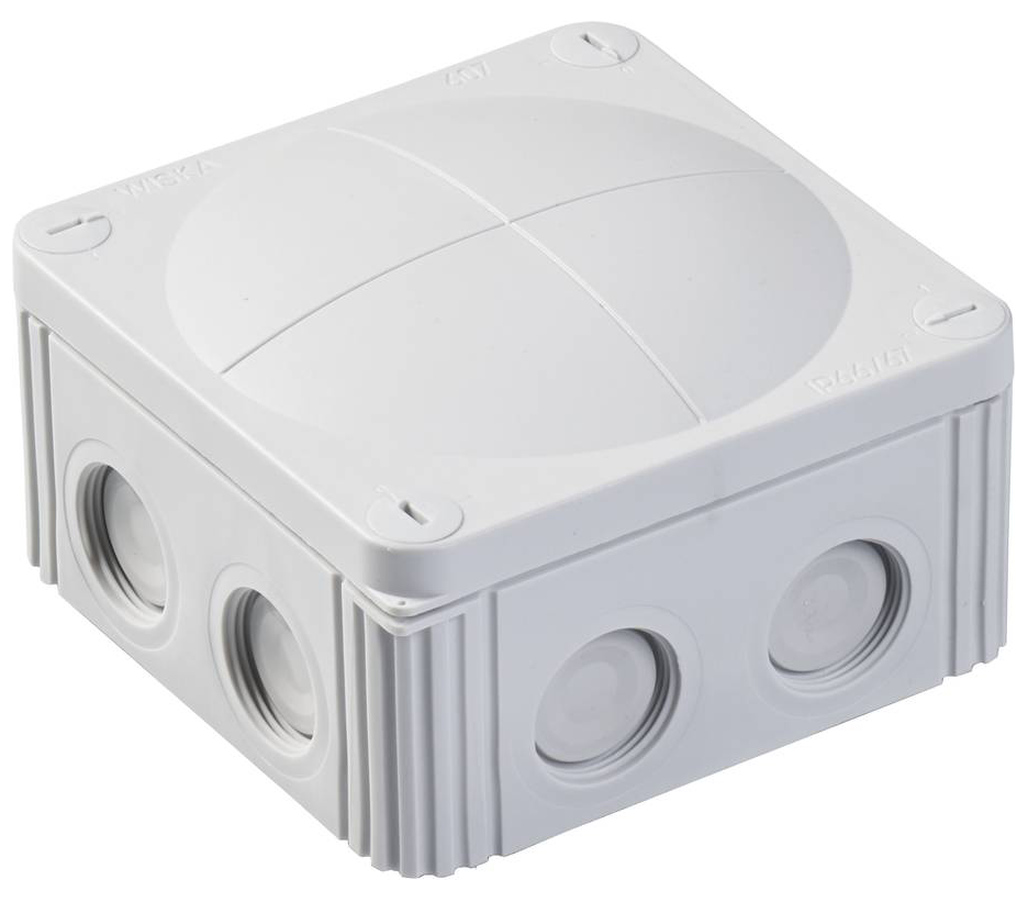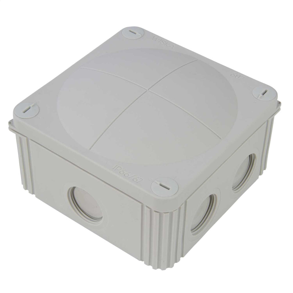 The Wiska 607/5 Junction Box in grey is ideal for both indoor and outdoor electrical connections.