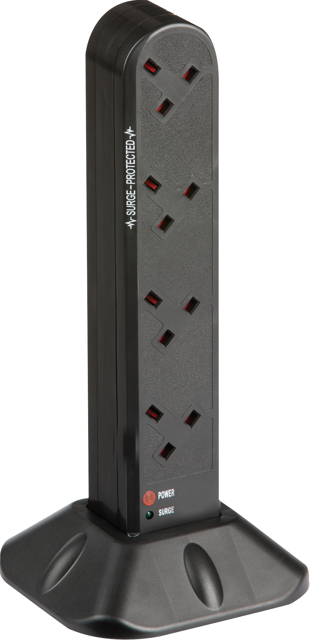 The 8GTOWER and 12GTOWER by ML Accessories available in 8 or 12 UK 3 Pin Socket variations. With Multi Plugs on the two sides of the tower and a 2m lead, these standing extension cord leads are ideal for both home or workplace environments to give you power where needed.