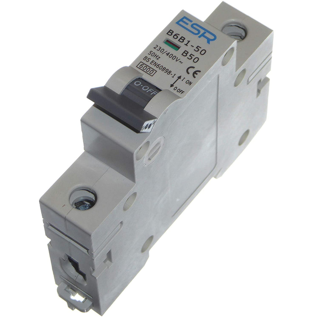 50A MCB B Curve 1 Pole 6kA Circuit Breakers Domestic Consumer Units