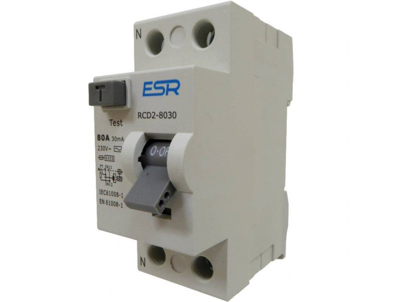 The Double Pole RCCB / RCD Breakers from ESR are available in a range of amp ratings including 16 Amp, 25 Amp, 40 Amp, 63 Amp and 80 Amp. This range includes the RCD2-1630, RCD2-2530, RCD2-4030, RCD2-6330, RCD2-63100, RCD2-8030, RCD2-80100 and RCD2-80100T models.