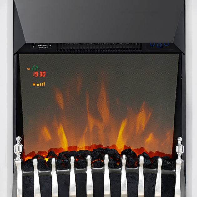 The Electric Fire has a helpful LED display located in the top left-hand corner of the window which displays the heat setting, flame cycle, and sleep timer. Please note: the LED display is only shown when changing a function.