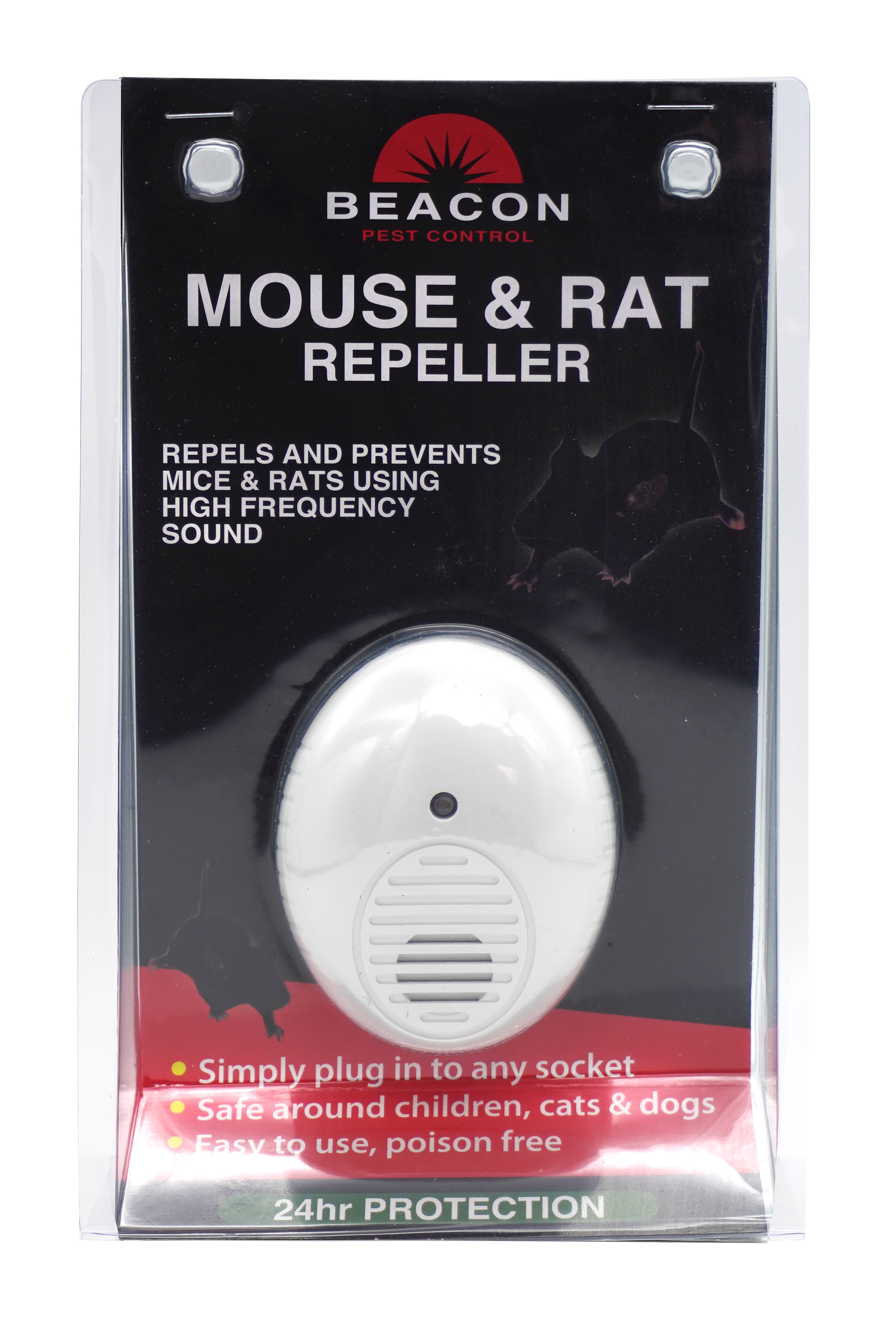 - Produces a high-frequency sound to drive mice and rats from your home
