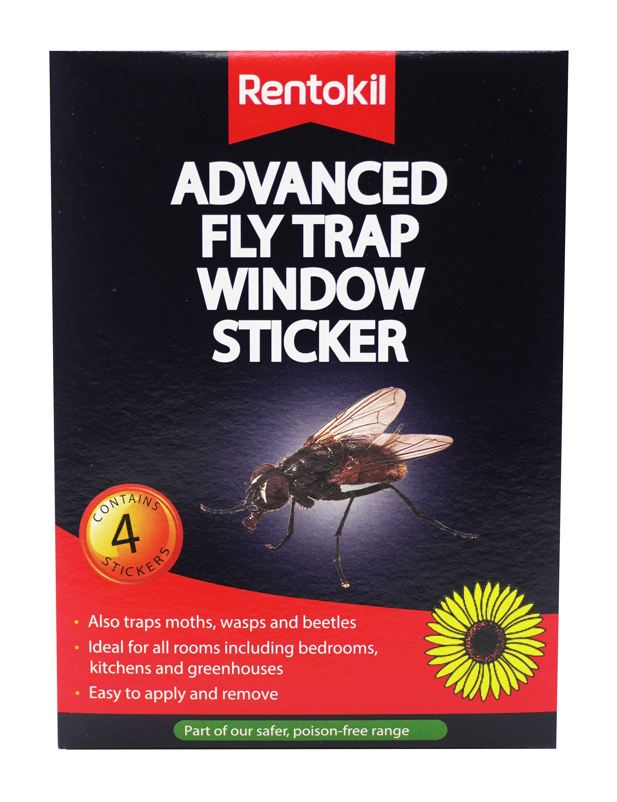 This window sticker fly trap is especially designed to attract flies and control fly activity indoors. It leaves no trace when removed from the window.