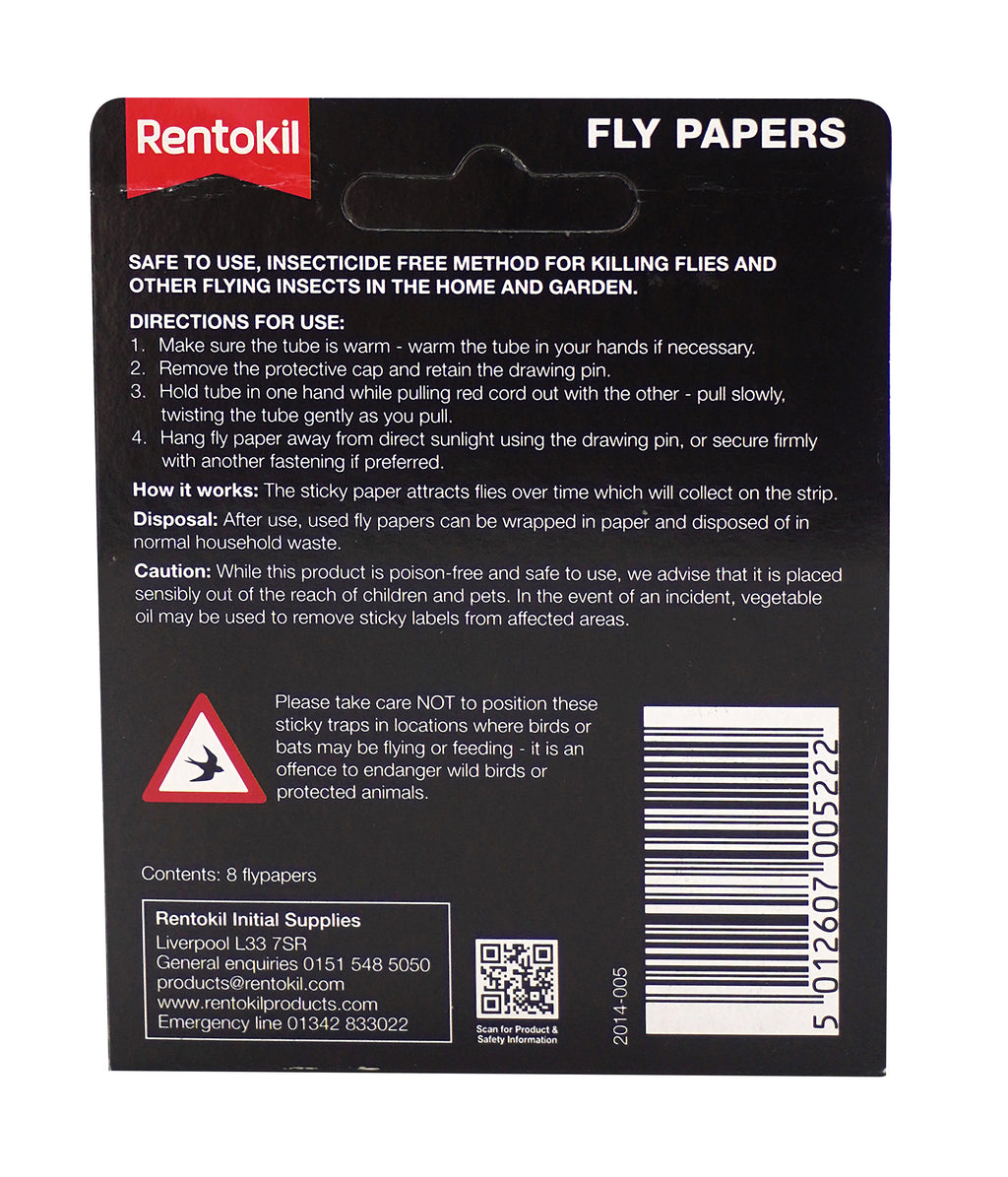 Please take care NOT to position these sticky traps in locations where birds or bats may be flying or feeding - it is an offence to endanger wild birds or protected animals.