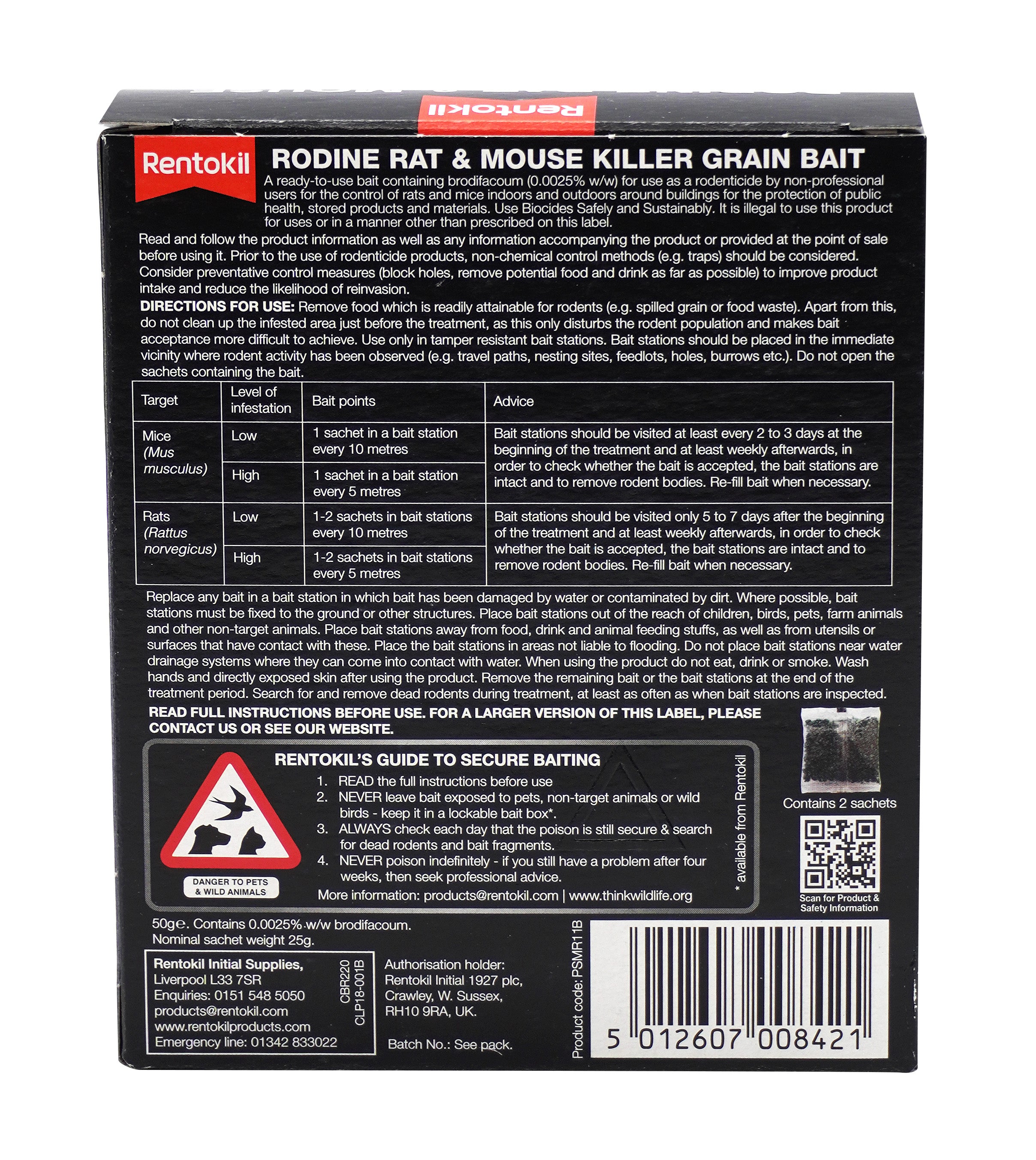 Follow the full instructions before use. Simply place bait inside a lockable bait station (available from Rentokil) and position in areas where mice or rats have been seen. Exclude ALL pets and children during use and remove all baits before allowing them back into the treatment area.