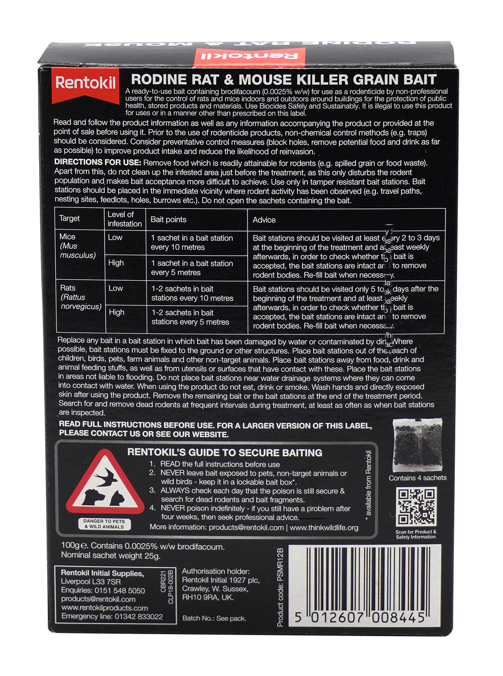 Follow the full instructions before use. Simply place bait inside a lockable bait station (available from Rentokil) and position in areas where mice or rats have been seen. Exclude ALL pets and children during use and remove all baits before allowing them back into the treatment area.