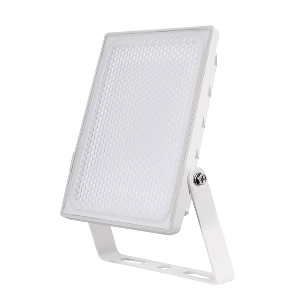 20W LED Flood Light in White or Black 4000K Colour Temperature 1600 Lumen Output 1 Meter Power Cord IP65 Ingress Protection for Exterior Use Robust Construction Textured Diffuser Adjustable Bracket Dimensions: 117mm H x 101mm W x 24 D (Ex. Bracket) Includes Fixing Accessories