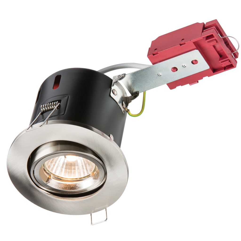 The Knightsbridge IP20 Die Cast Tilt Insulation Compatible Fire Rated Downlights with Bezel are compatible with GU10 Halogen, LED and CFL Lamps up to 60mm Depth. These downlights are sure to bring style to your lighting solution.
