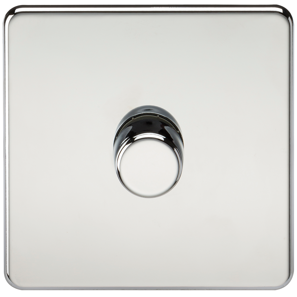 KnightsBridge 10-200W 1G 2 Way 230V Screwless Polished Chrome Led Compatible Electric Dimmer Switch