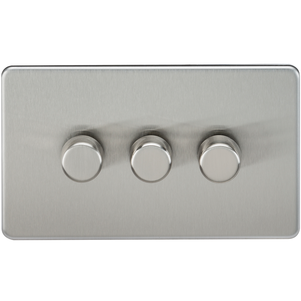 10-200W 3G 2 Way Screwless Brushed Chrome 230V Electric Dimmer Switch Led Compatible