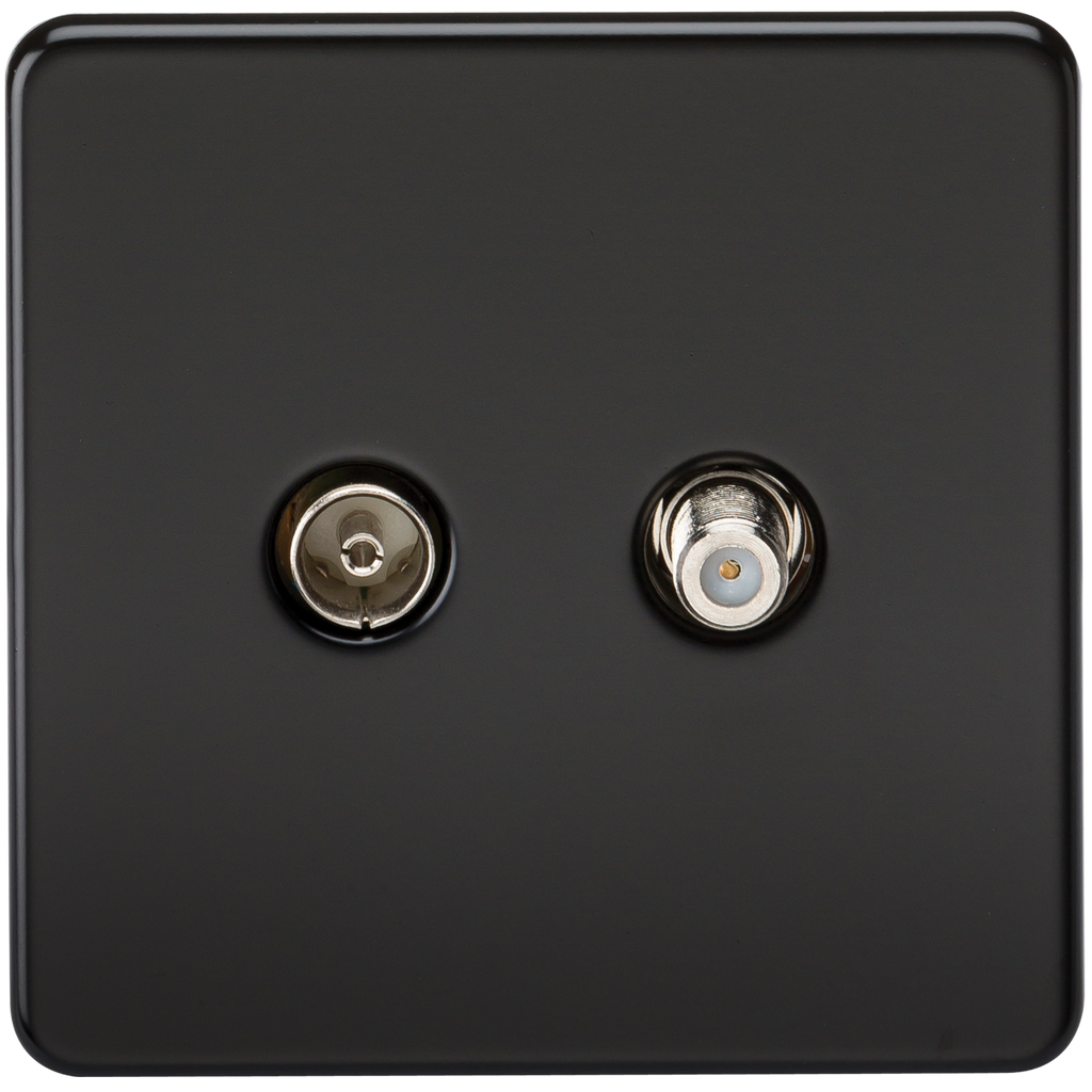 The Knightsbridge Screwless Coaxial TV and Satellite F-type TV Outlet, Isolated Single Plate in Matt Black is the ideal decorative wall plate for use in the modern home, business or hotels. The screwless design features an easy clip on cover with an internal gasket for moisture protection and matching screws.