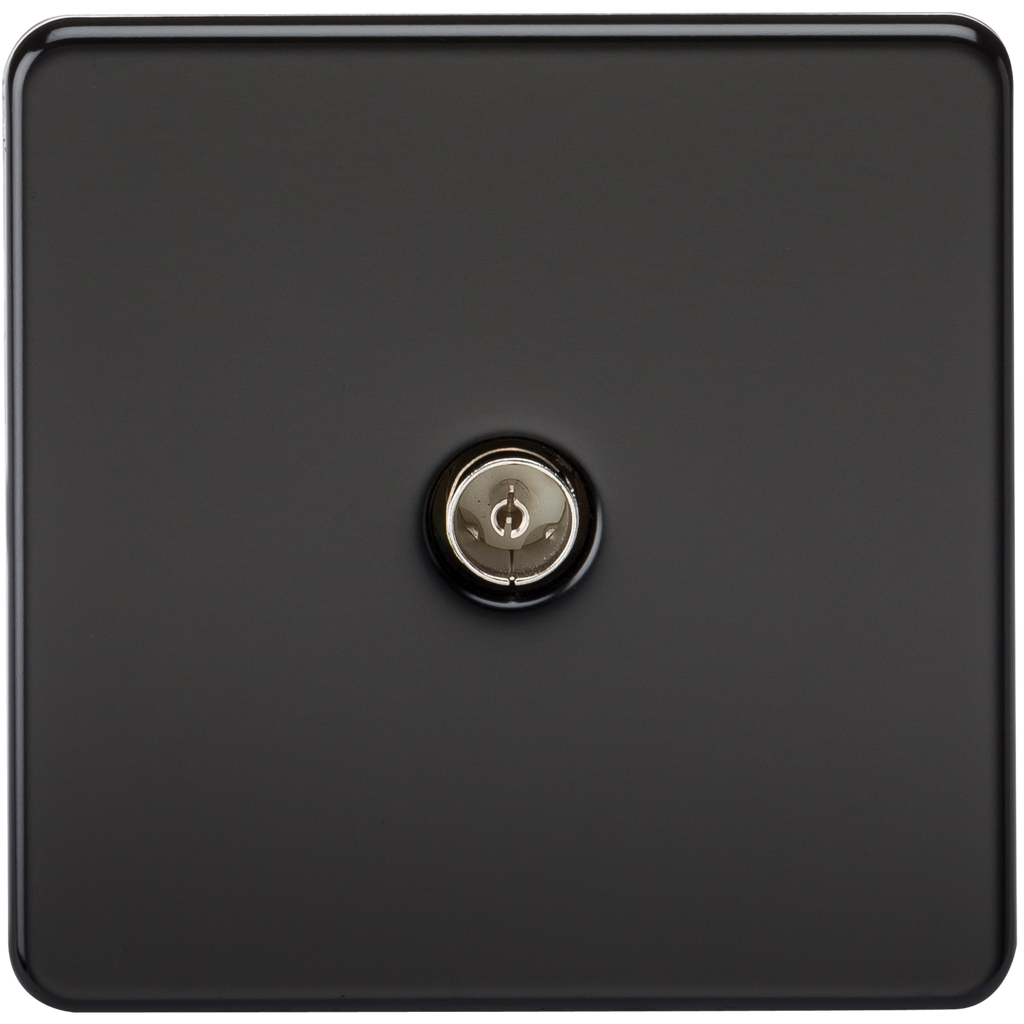 The Knightsbridge Screwless Coaxial TV Outlet Un-isolated Single Plate in Matt Black is the ideal decorative upgrade for use in the modern home, businesses and hotels. The screwless design features an easy clip on cover with an internal gasket for moisture protection and matching screws. It has an ultra slim profile and is constructed from durable and scratch resistant thermoset plastic material.