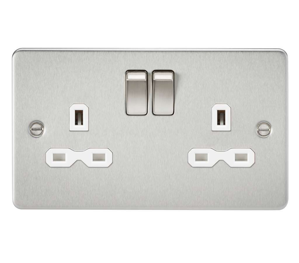 13A 2G DP Switched Flat Plate Socket - Brushed Chrome w/ Black Inserts or White Inserts