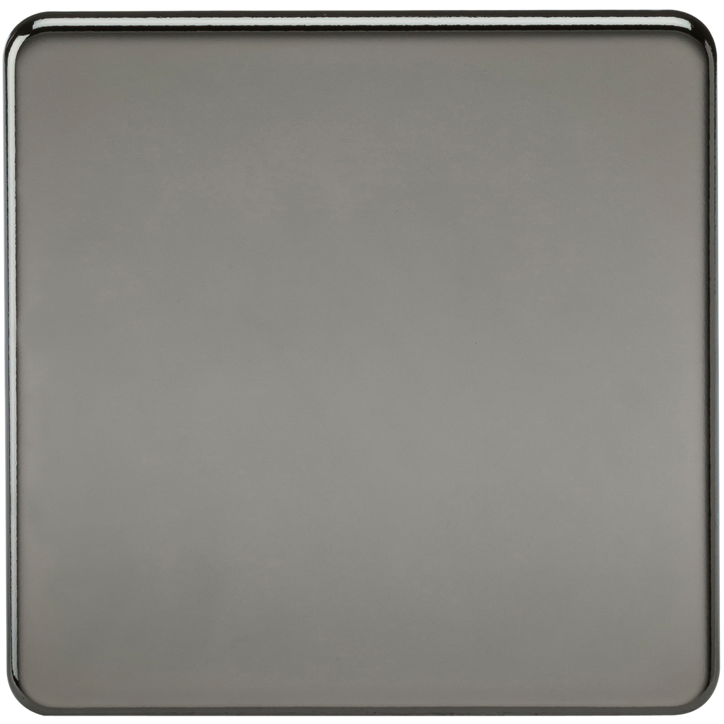 The Knightsbridge SF8350BN Screwless 1G Blanking Plate in Black Nickel is ideal to neatly cover unused or redundant boxes.