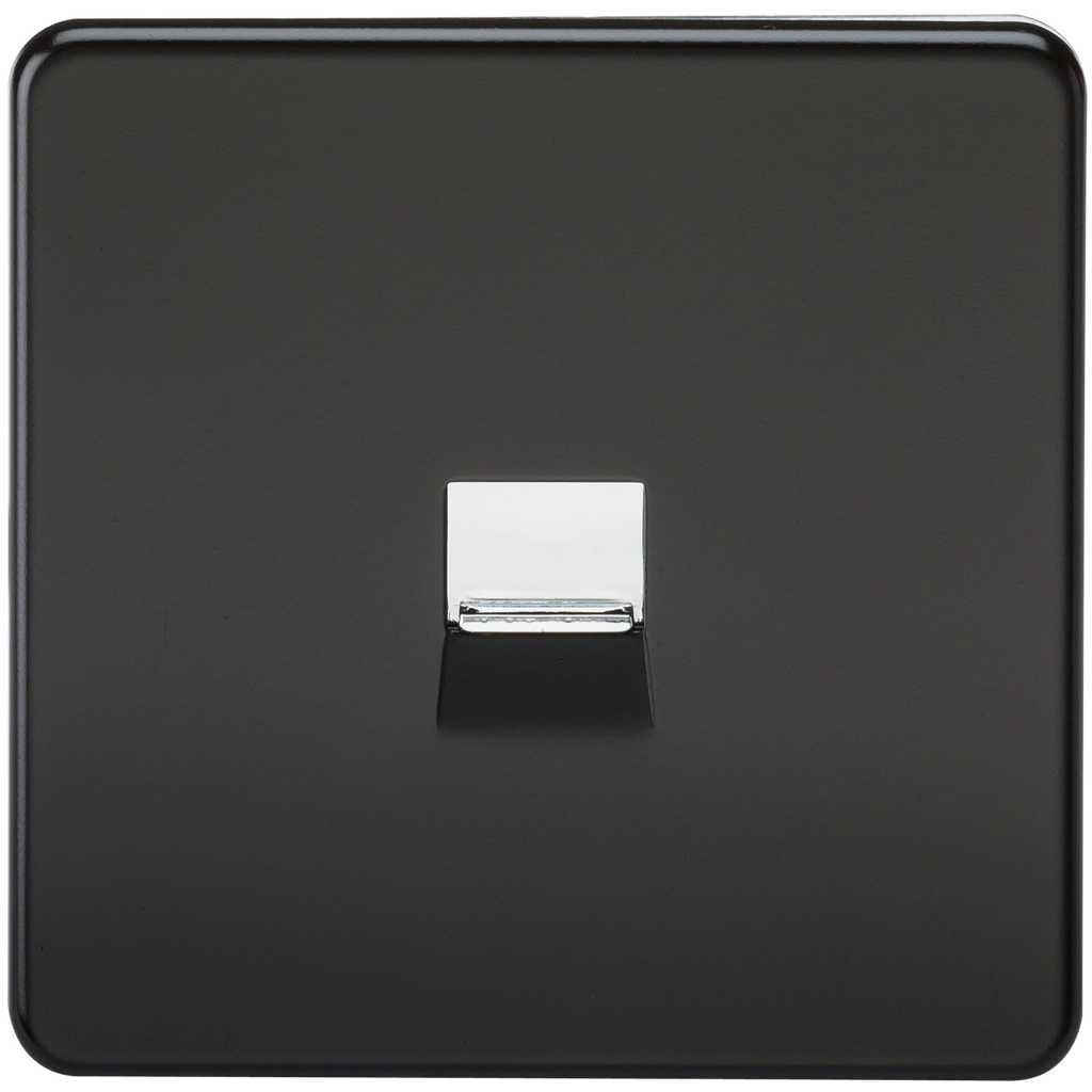 The Knightsbridge SF7400MB Screwless Telephone Extension Socket in Matt Black with chrome shutter is a decorative single wall plate ideal for the modern home. Secondary or extension telephone socket are used to run additional points of the original master socket.